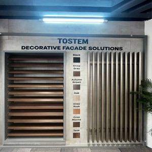 Wrapping Bars .. from Tostem ..A jewellery product for facades that matches with window shades and also available in wooden finish.